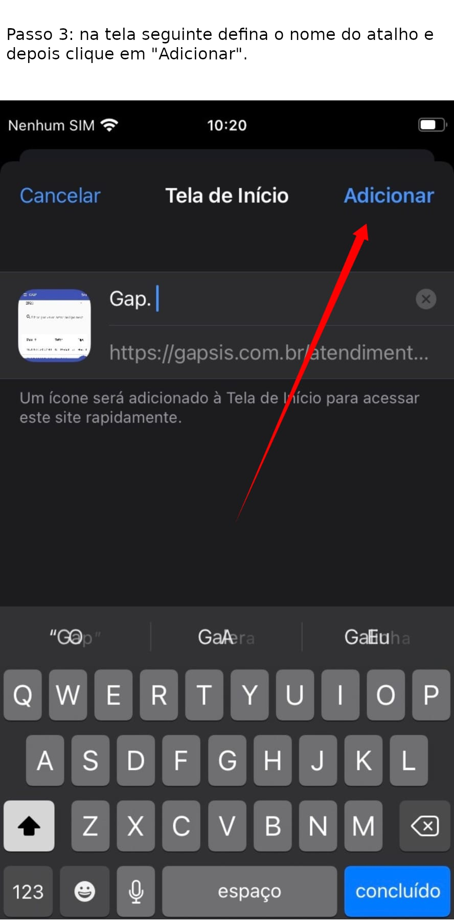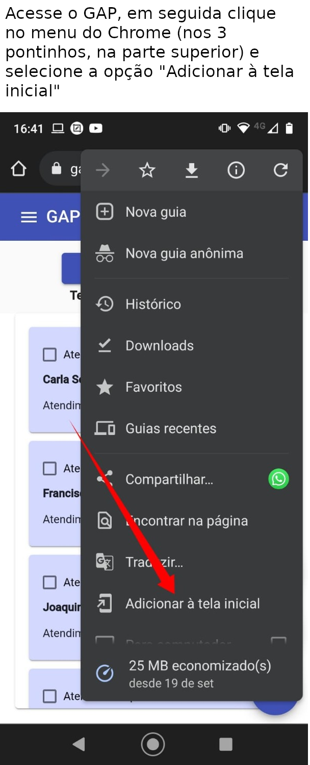 Para facilitar o acesso ao GAP crie um atalho na área de trabalho do seu celular. Para isso através do seu celular acesse o GAP em www.gapsis.com.br e siga as instruções abaixo de acordo com o tipo do seu navegador e celular.