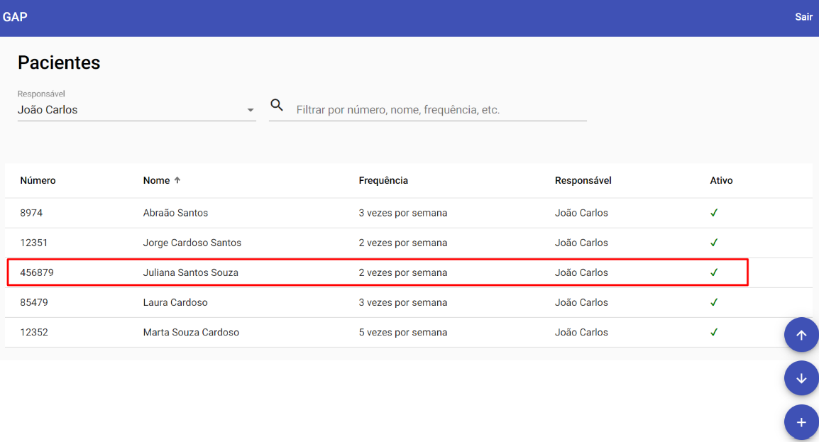 Para alterar os dados do paciente ou excluí-lo basta selecioná-lo na tela de listagem de pacientes: